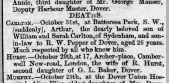 It was the only time I saw my father shed a tear, my mother brought up her three little tots for a time, then my sister Lydia gave up her young man on purpose to mother the children and although at that time it was illegal to marry a deceased sister’s husband she did so and about eleven months later she died in her confinement in London, mother bringing the baby about two days old to Dover with the other three and had them for some years. What a mother we had.
